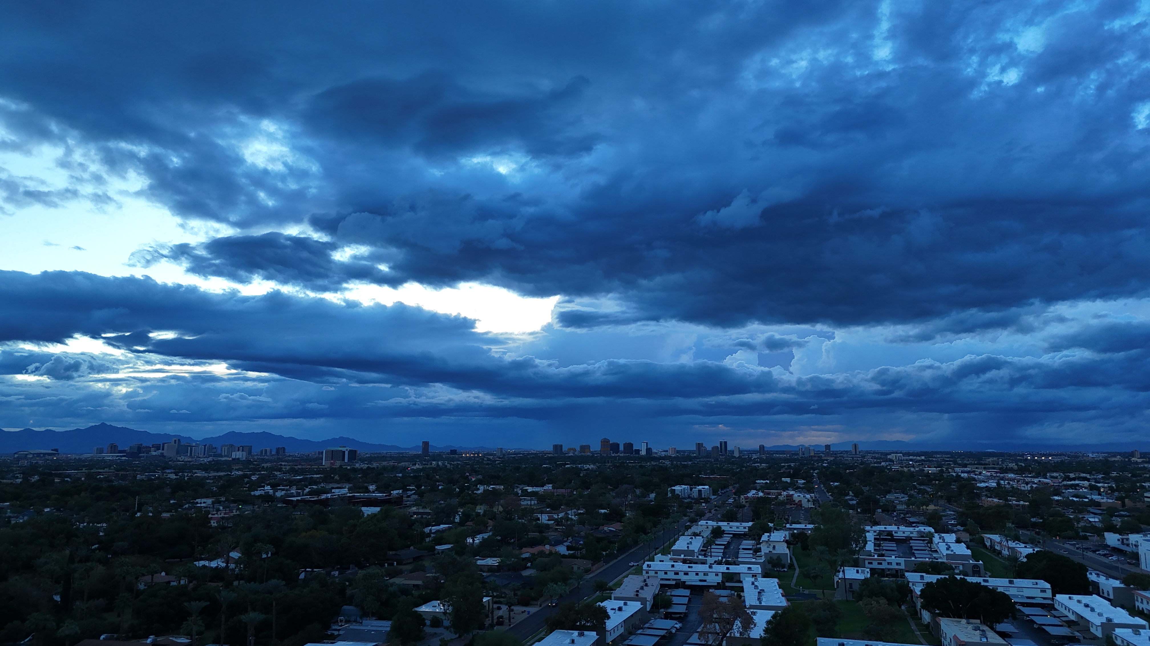 - Storm clouds over Phoenix city skyline with dramatic sky