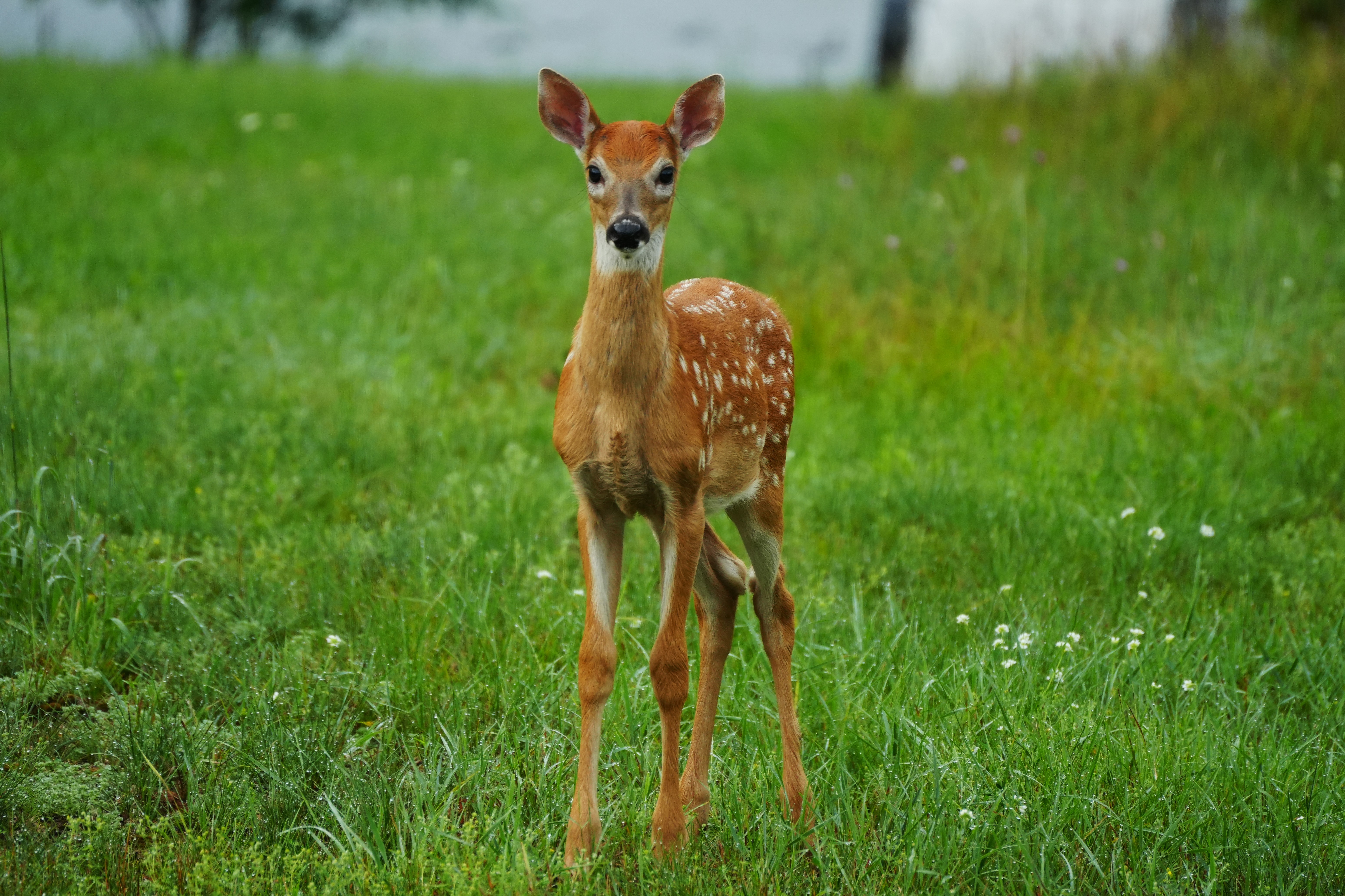 - Young deer standing in grassy meadow in Wisconsin